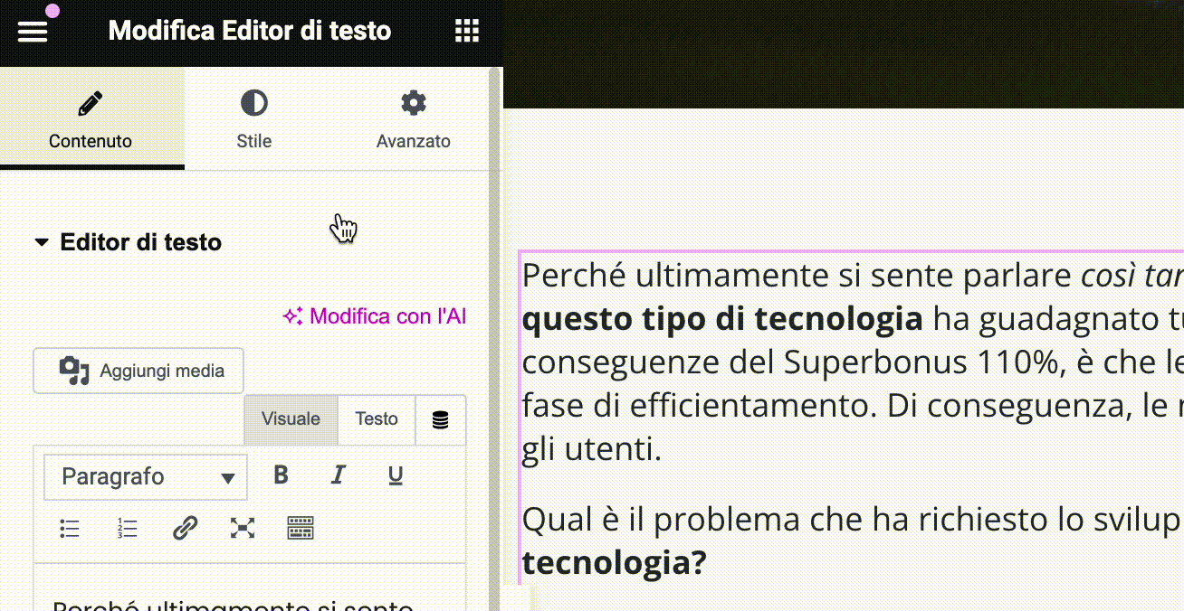 Ad esempio Elementor ti offre la possibilità di impostare comportamenti responsivi in base allo schermo che visualizzerà la pagina. Selezionato un blocco, nella sezione "Stile" potrai cambiare il tipo di dispositivo.